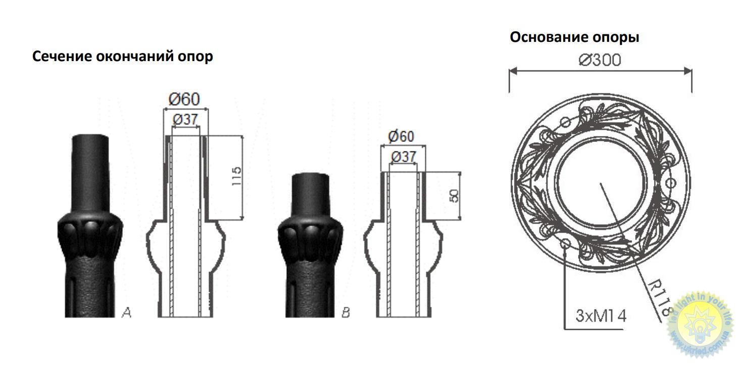 Початок » ВУЛИЧНЕ ОСВІТЛЕННЯ » Паркові світильники » Опора для фонарного столба декоративная S-40W H4.03m с нишей