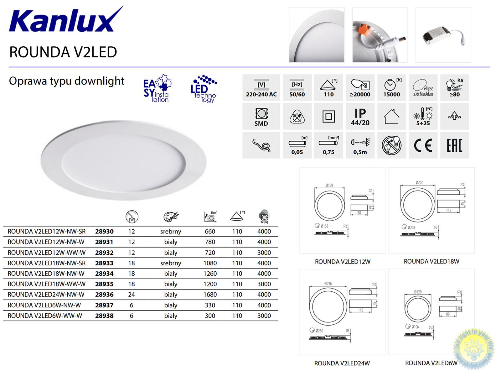 Наименование товара | Kanlux 28932 12W 3000K IP20 Rounda |