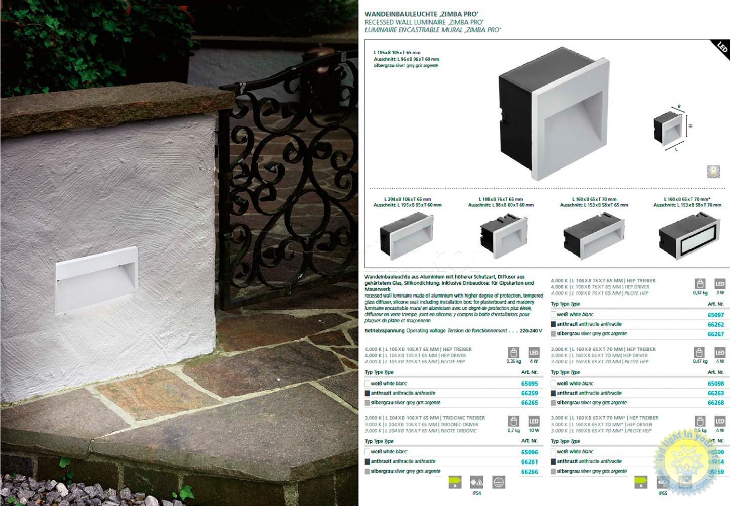 Початок » ВУЛИЧНЕ ОСВІТЛЕННЯ » Врізні світильники » Светодиодный фасадный встраиваемый Eglo 66261 10W 3000K IP54 Zimba 204